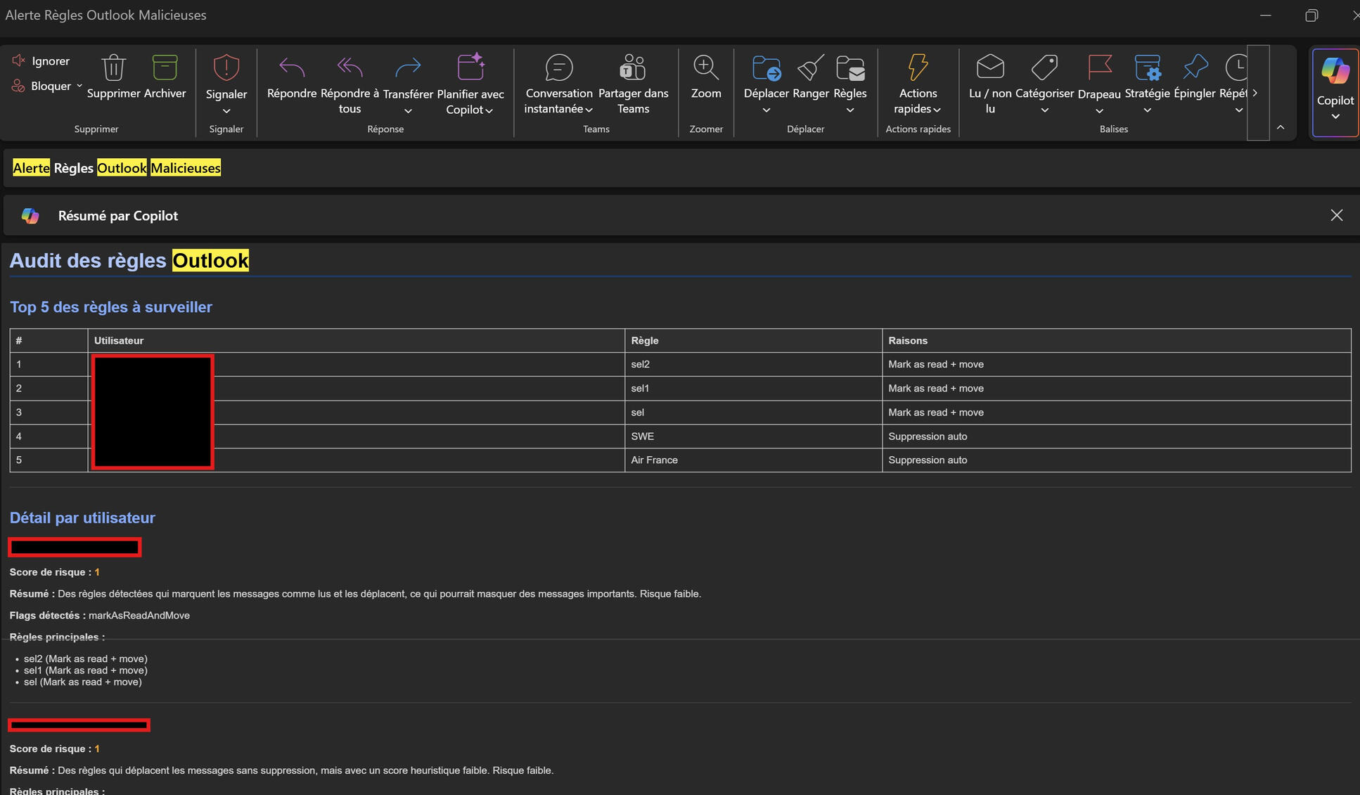 Provitek réalise un audit automatisé et structuré des règles de messagerie afin d'identifier ces configurations à risque.